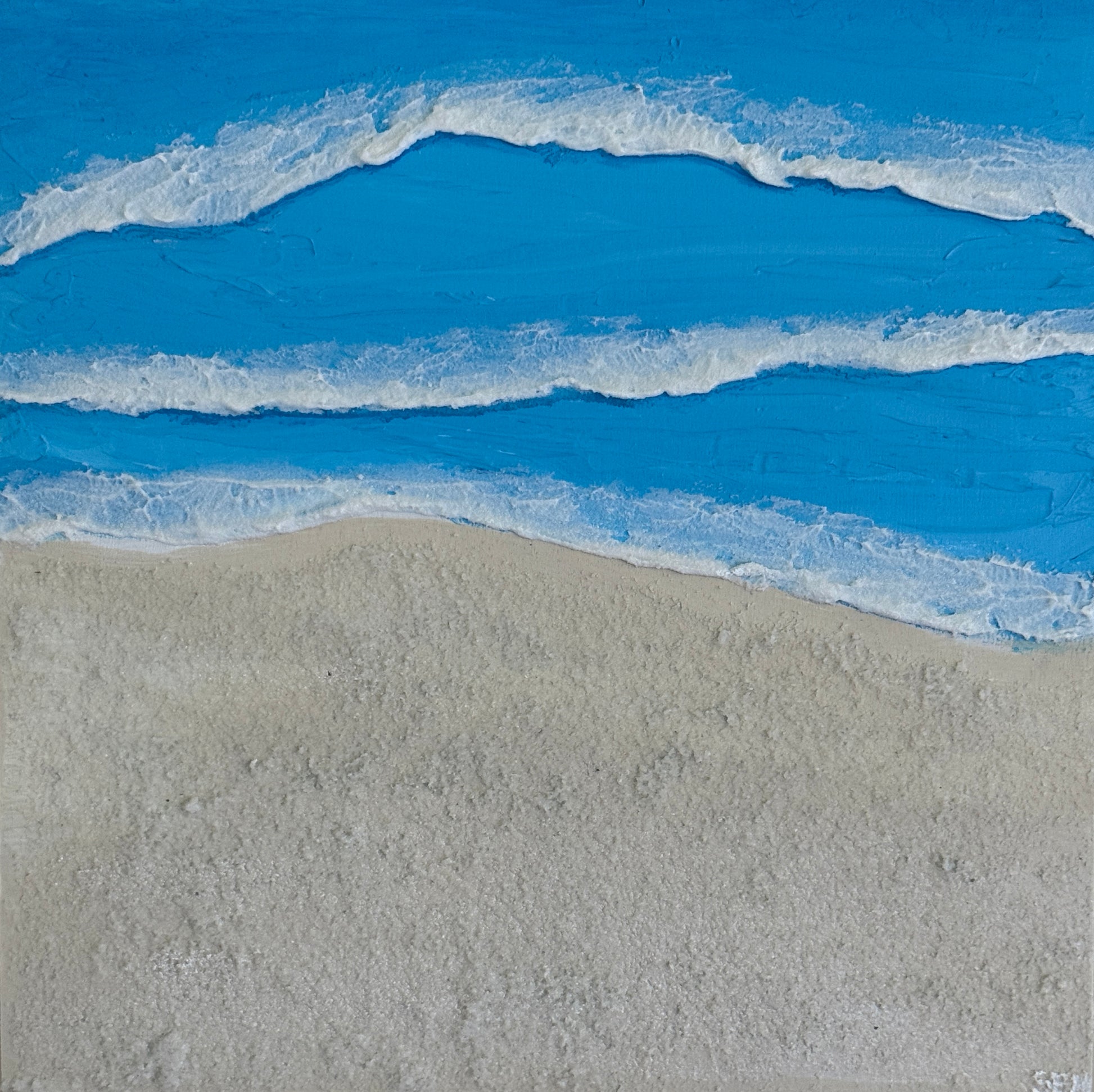 A moment of pause between the waves, Drift Interlude captures the soft hush of ocean rhythm. The textured shoreline and luminous blues invite the viewer to linger, caught between the steady pull of the tide and the stillness of sand.