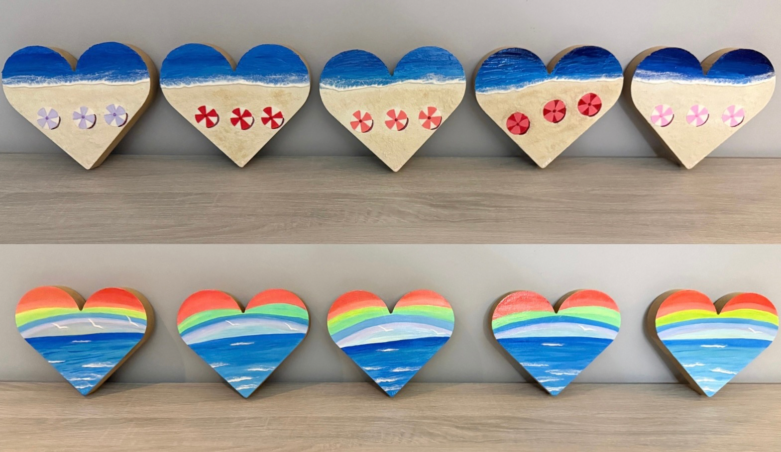 This piece is part of the Heart Series, celebrating love as hope, joy, and the beauty that appears just after the rain. Painted in textured acrylic on a 6 x 6 inch heart-shaped birch wood panel, the work features layered ocean blues and soft rainbow bands meeting the horizon, symbolizing renewal, calm, and love’s gentle return.